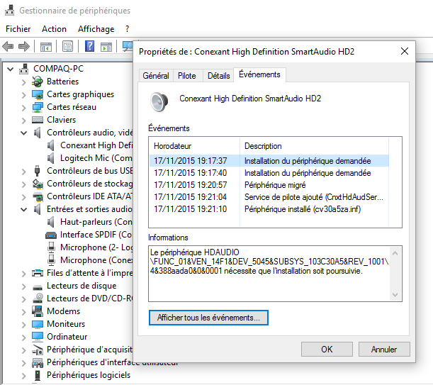 Je ne vois rien de particulier, la recherche de panne est négative, tout va bien...les pilotes sont à jour