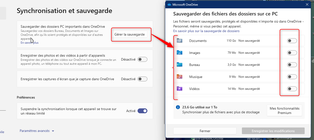 Je viens de passer ma connexion en connexion limitée, (donc avec l'option dans onedrive pour désactiver la synchro lors d'une connexion limitée)